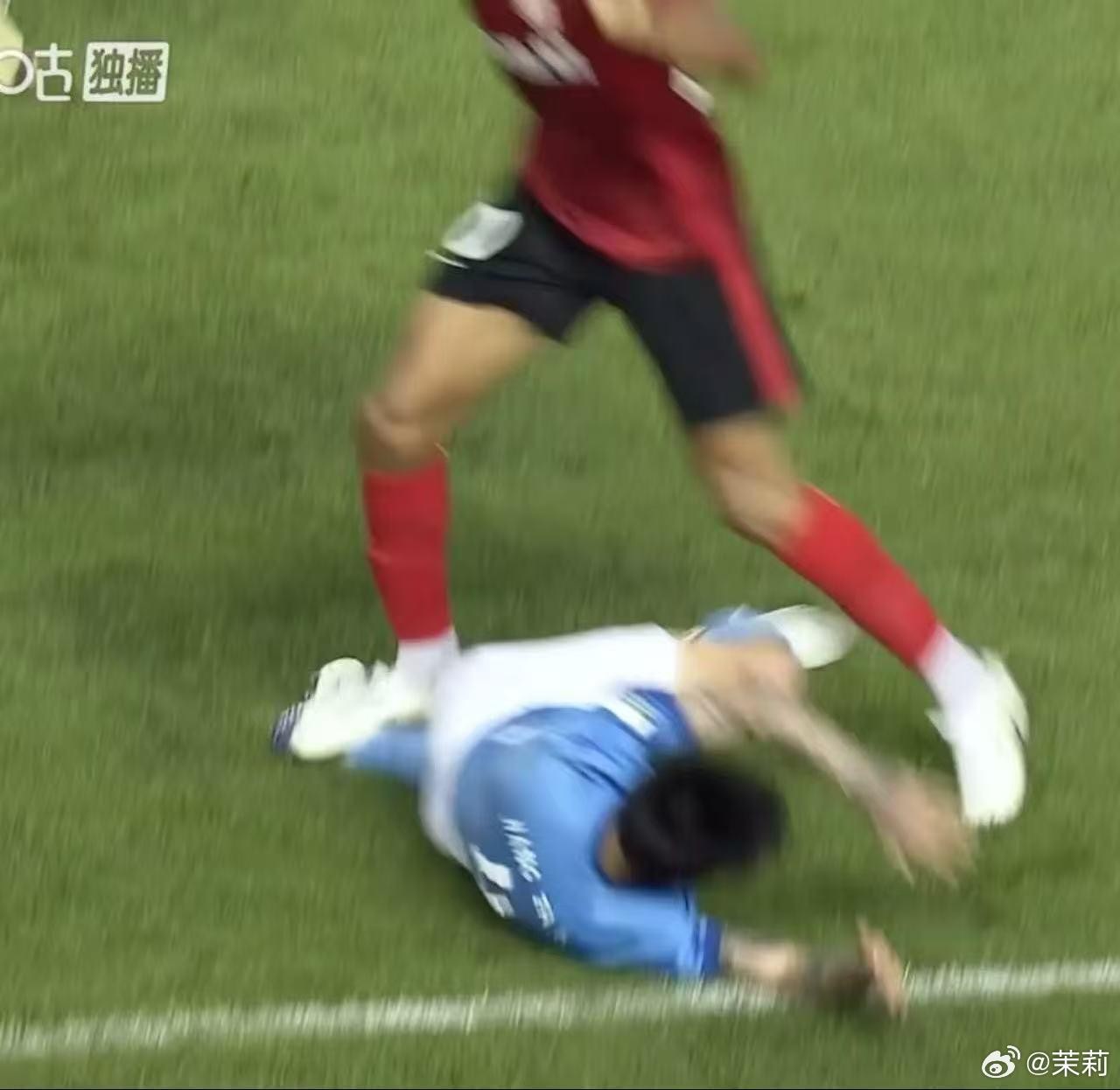 2.比赛第69分钟,赵英杰倒钩踢到廖力生面部,当时廖力生就血流满面,甚至失去意识,随后被抬到救护车送往医院,他下场之后,深圳新鹏城的中场控制力明显下降。今天了解到,廖力生在这次对抗中鼻梁骨折,他需要进行手术治疗!
